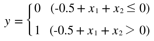 우선 OR 게이트의 동작을 시각적으로 보겠습니다. OR 게이트는, 가중치 매개변수가 $(b, w_1, w_2)$일 때 퍼셉트론은 아래의 식으로 표현이 됩니다.